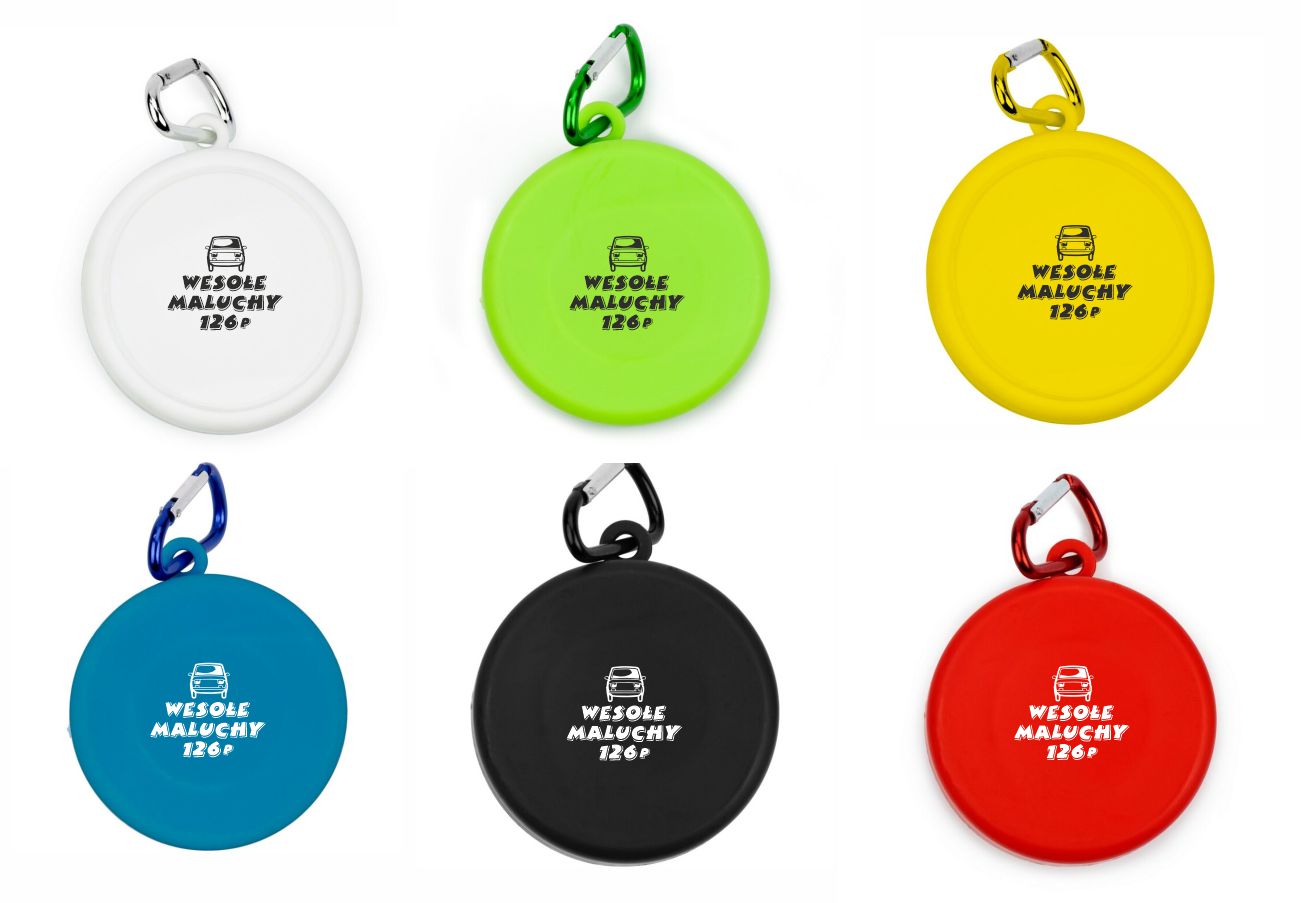 Niezbędny w podróży, składany kubek z logo Wesołych Maluchów.
